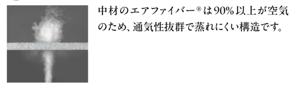 - メリット④:90%が空気だから通気性抜群!夏も蒸れずに快適