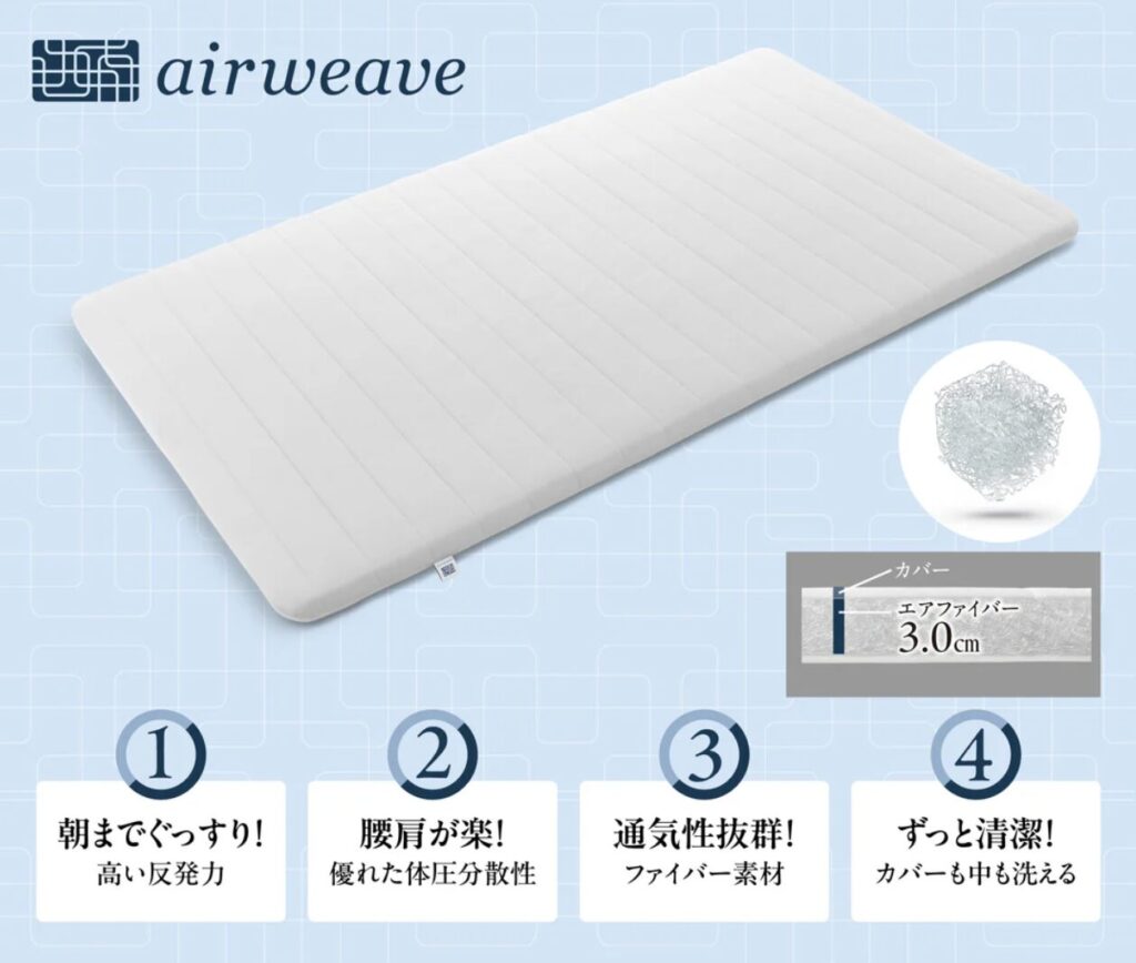 - コスパ最強:上位モデルと同じ素材を使いながら、3万円台で「エアウィーヴの快眠」を実現できる。