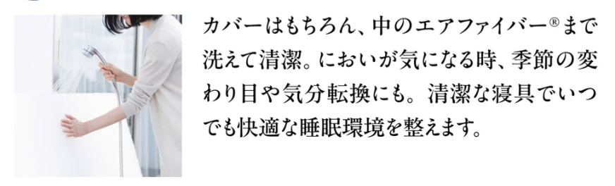 - メンテナンス:「シャワーで中身まで洗えるので、ダニの心配がなく精神的に楽」