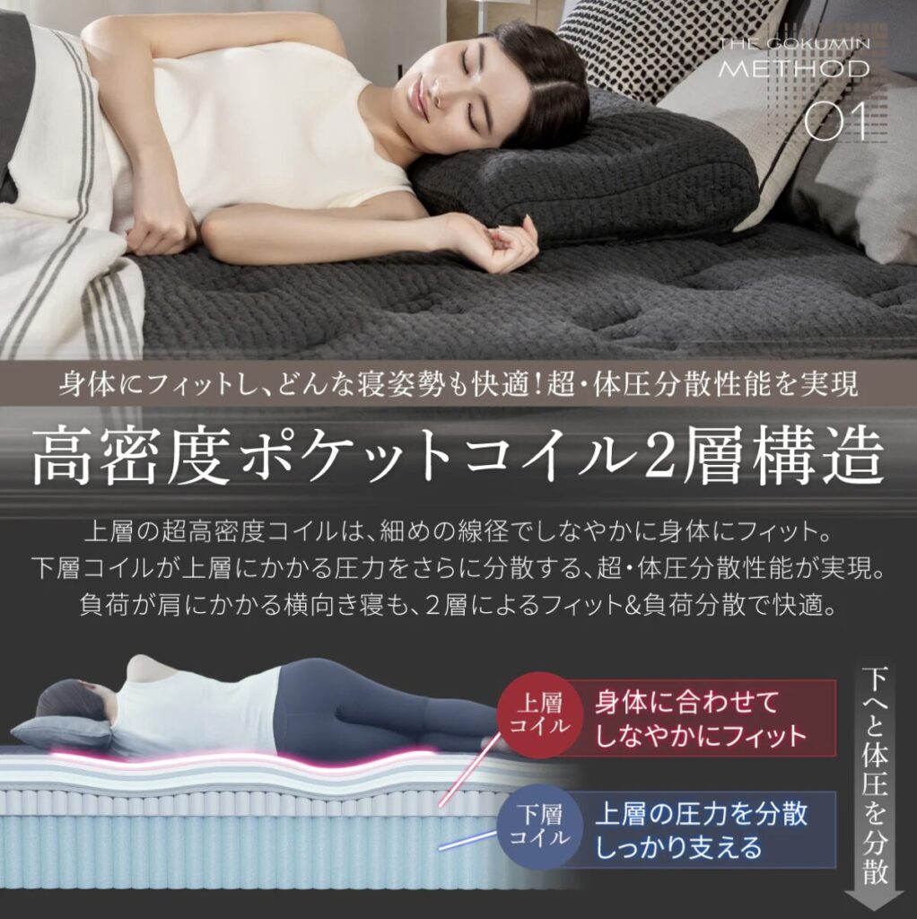 - 【本音レビュー】「GOKUMINデュアルコイルマットレス」の良い4つの口コミ・評判