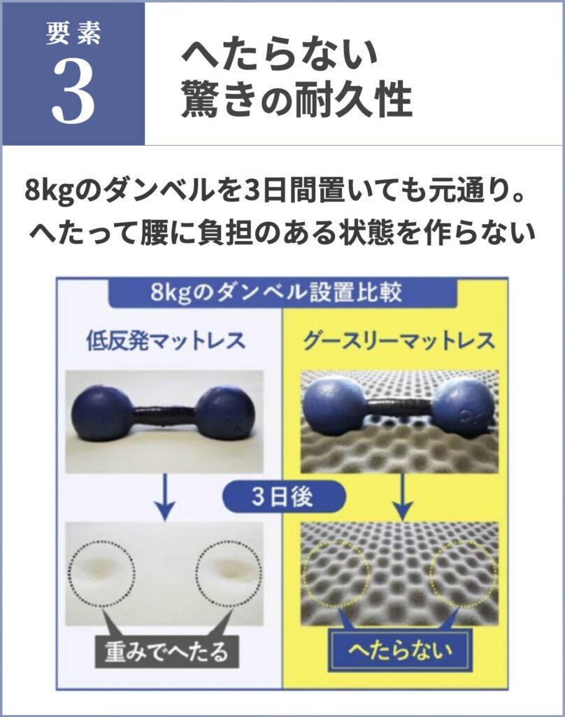 グースリーマットレスは耐久性が高いと評判ですが、使い方によってはへたりが全く起きないわけではありません。