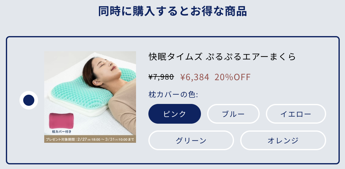 今なら、「ぷるぷるエアーまくら」同時購入で20%OFF!!