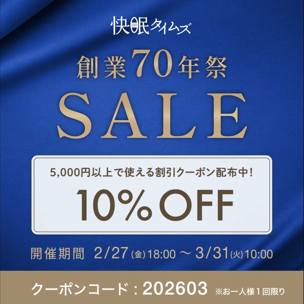 「快眠タイムズ・マットレス」は公式HPで10%OFFなどの定期的にセールをやっています。