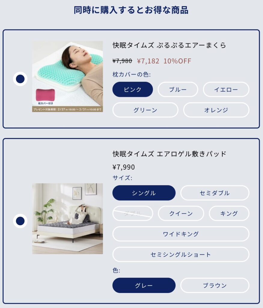 サイズは「快眠タイムズ」、「エマスリープ」ともに同じラインナップ