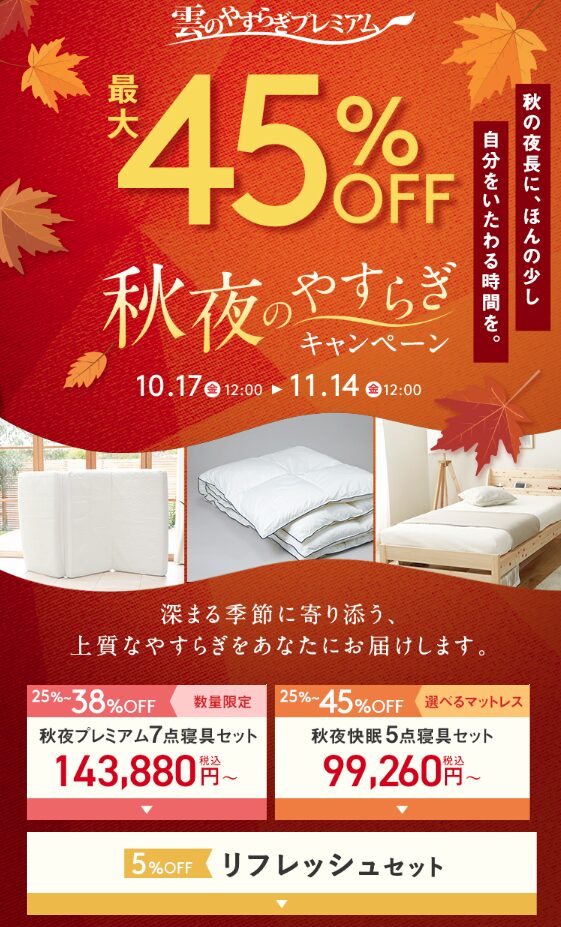今なら、オータムスリープキャンペーン実施中!(2025年10月17日まで)