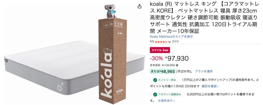 返品期間は、Newコアラマットレスが120日、「エムリリー・ベッドマットレス」は返品保証なし。