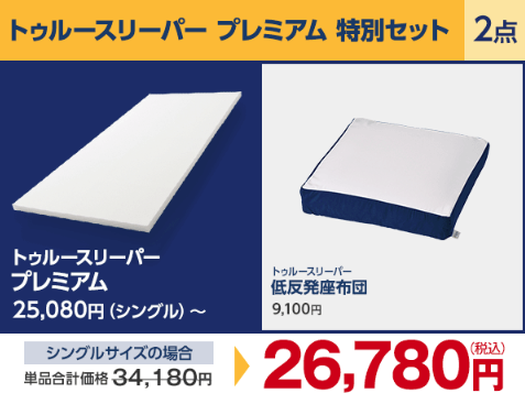 「トゥルースリーパー・プレミアリッチ」は、公式HPで10%OFFクーポンや、枕と掛布団がセットになっても本体価格と同額になる特別セット割引、2セット買うとさらに割引となるなど、お得に買えるプランがそろっています。
