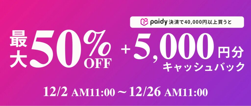 今だけ、最大50%OFF!!(12月26日まで)