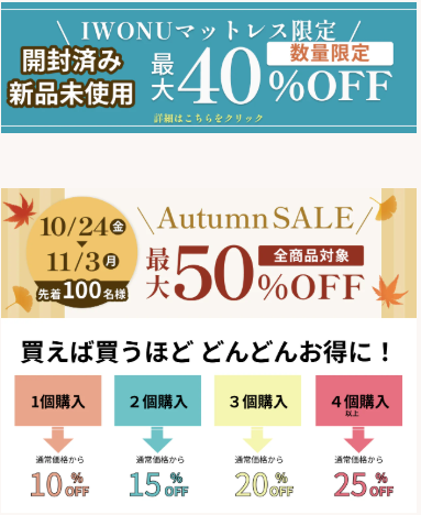 リムネマットレスは、公式HPで10,000円OFFなどクーポンを配布しています。