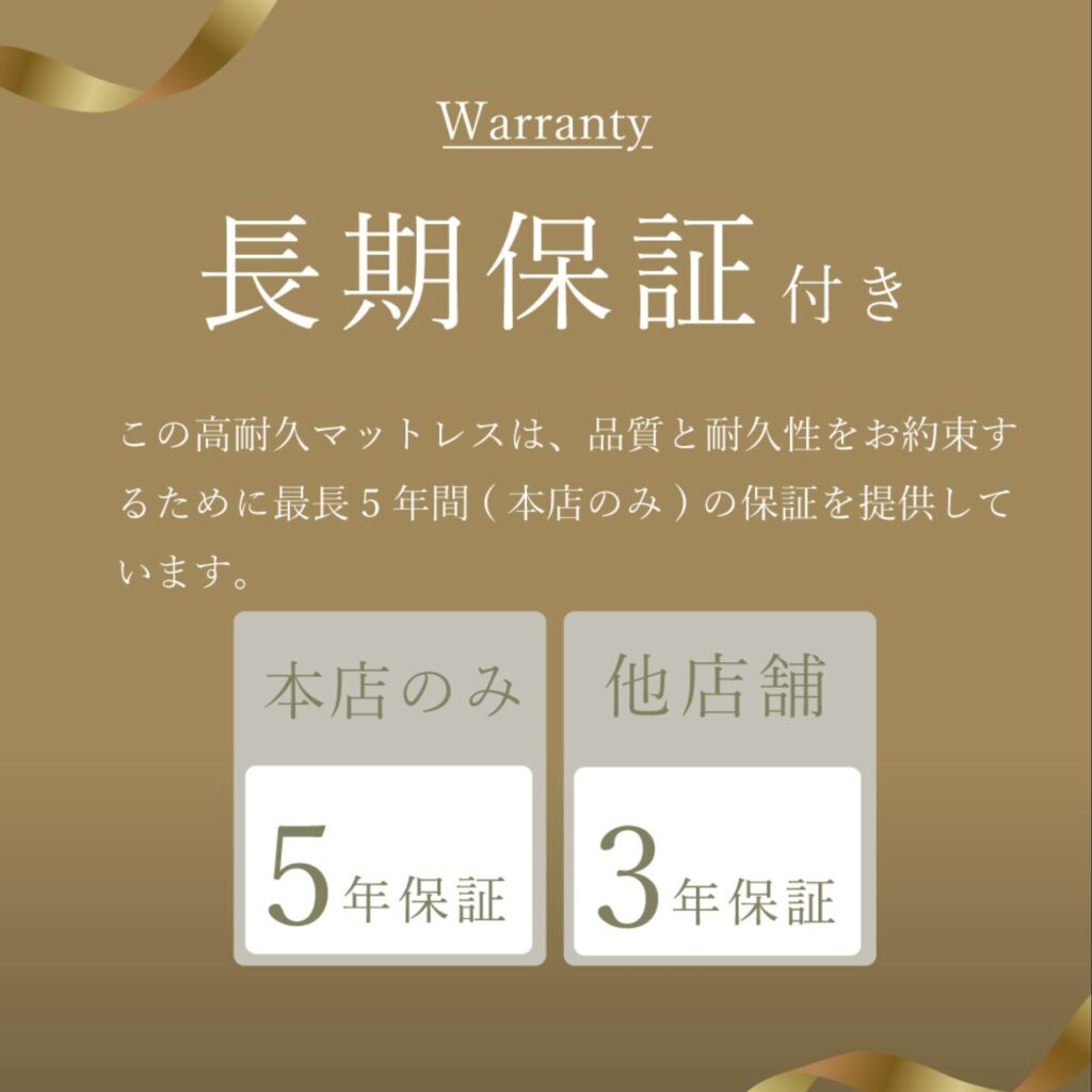 公式サイト(minamotobed.jp)から購入した場合はメーカー保証5年が適用されますが、楽天市場・Yahoo!ショッピングなどのECモールからの購入は通常3年保証となります。