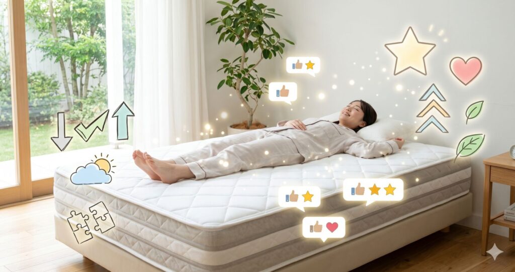 結論から言えば、口コミの大多数が腰痛改善・目覚めの変化・コスパの高さに高い評価を与えており、国産マットレスの中でもトップクラスの満足度を誇る製品です。
