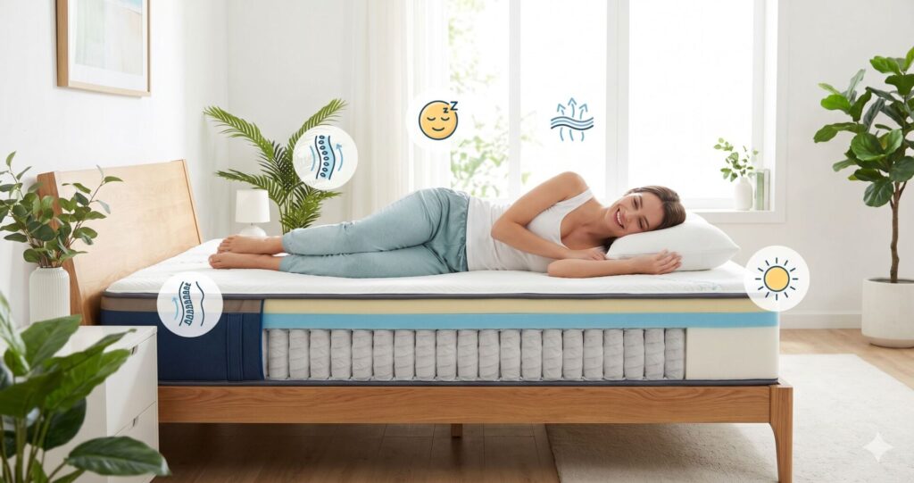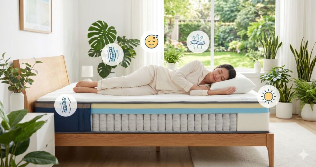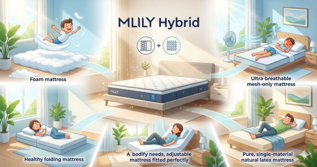 結論、エムリリー ハイブリッドマットレスは体重50〜80kg・腰痛持ち・中間の寝心地を求める方に特に向いた1台です。