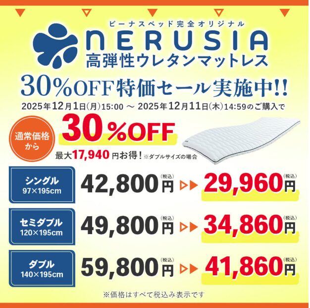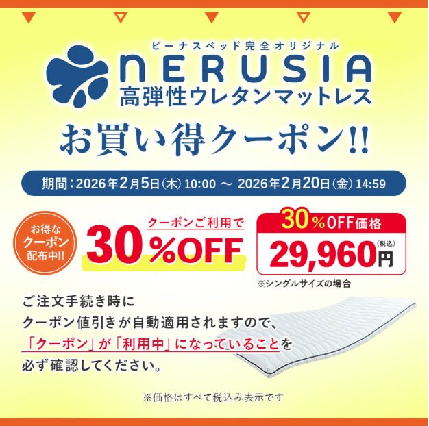 「NERUSIA(ネルシア)高弾性ウレタンマットレス」は、高耐久性で長期間使用できるため、一般的なウレタンマットレスよりコスパはいいかも!