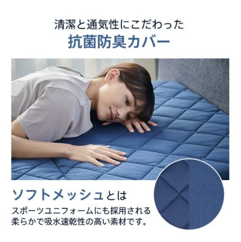 - カバーには抗菌防臭・吸水速・干加工を採用